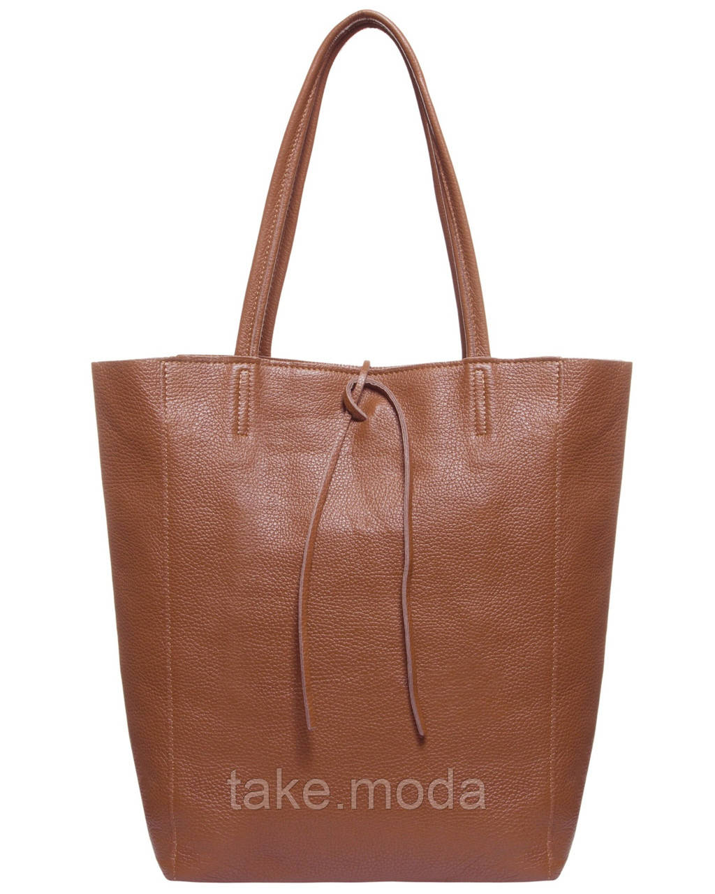 Шопер Takeasy Коричневий - Італійська жіноча м’яка сумка-шопер із натуральної шкіри без підкладки на блискавці з внутрішньою