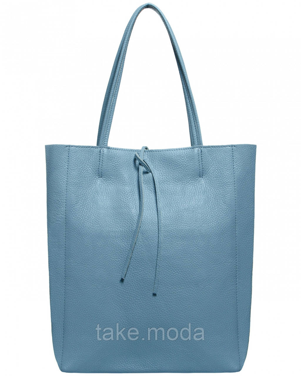 Шопер Takeasy Денім - Італійська жіноча м’яка сумка-шопер із натуральної шкіри без підкладки на блискавці з внутрішньою кишенею та