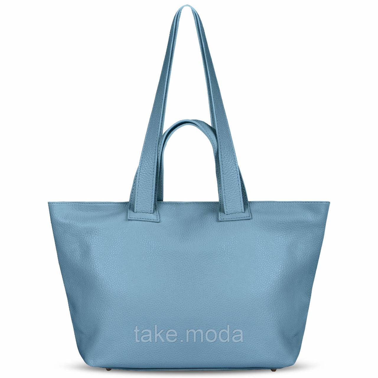 Шопер Takeasy Денім - Італійська жіноча м’яка сумка-шопер із натуральної шкіри з двома парами ручок на блискавці з підкладкою